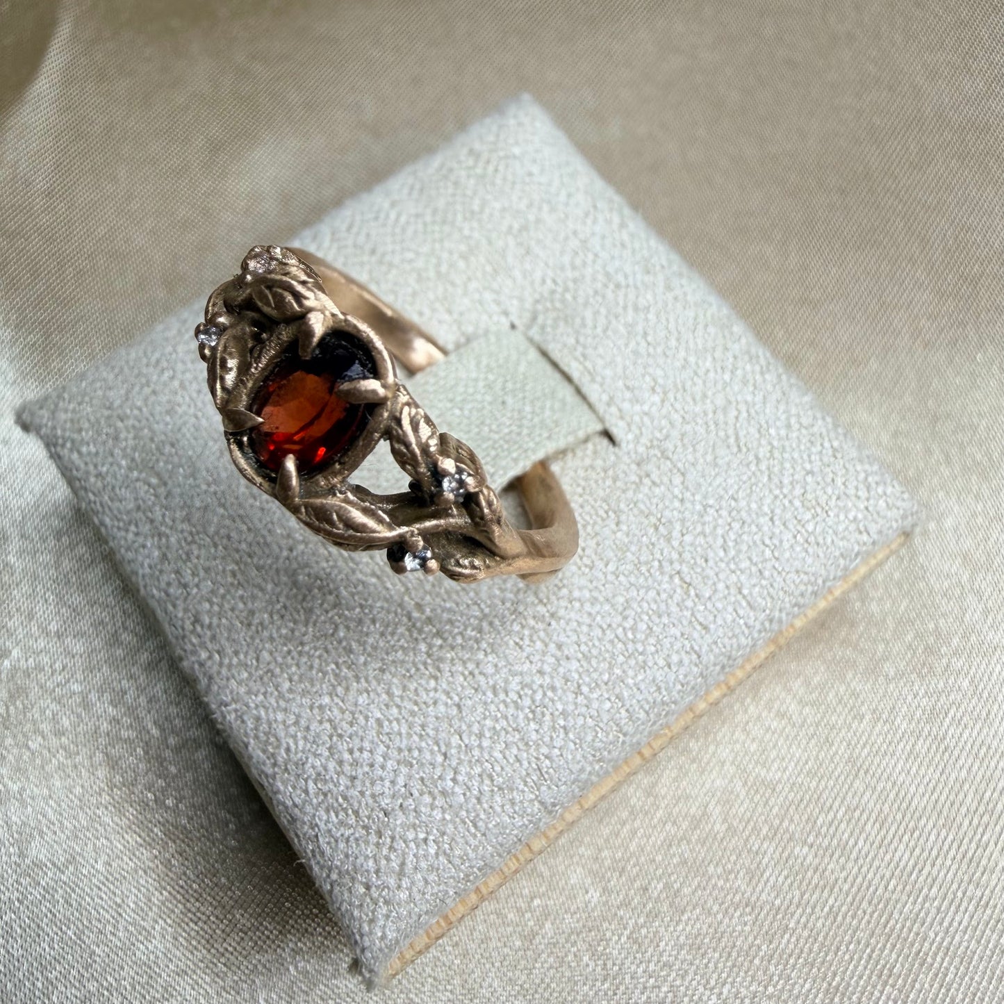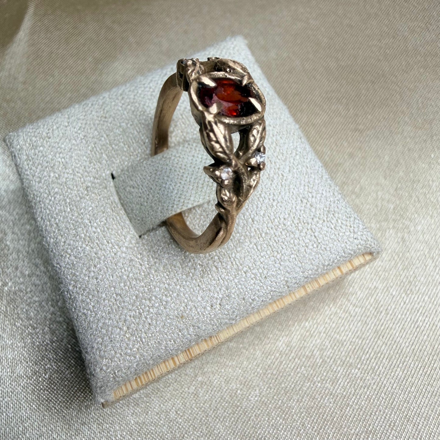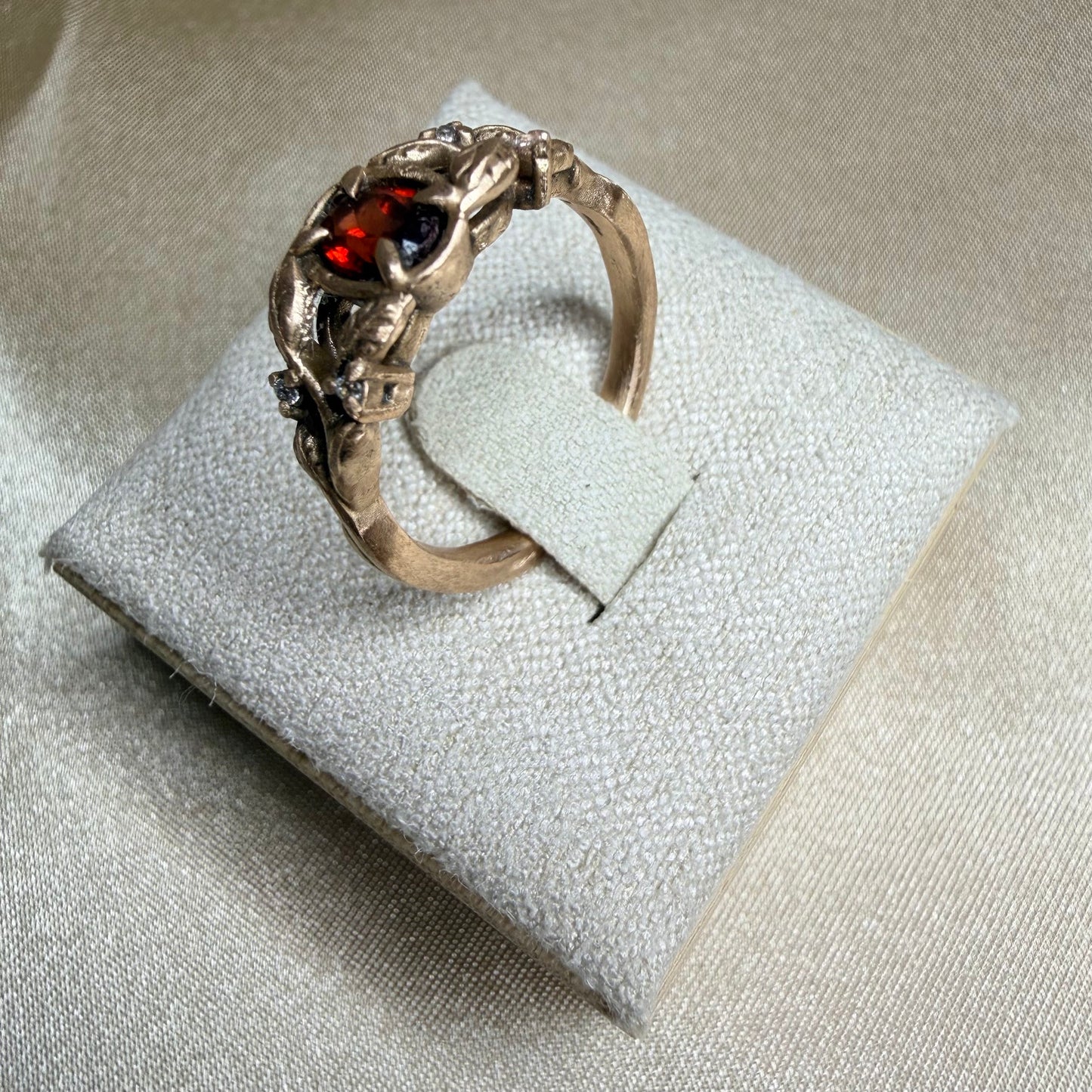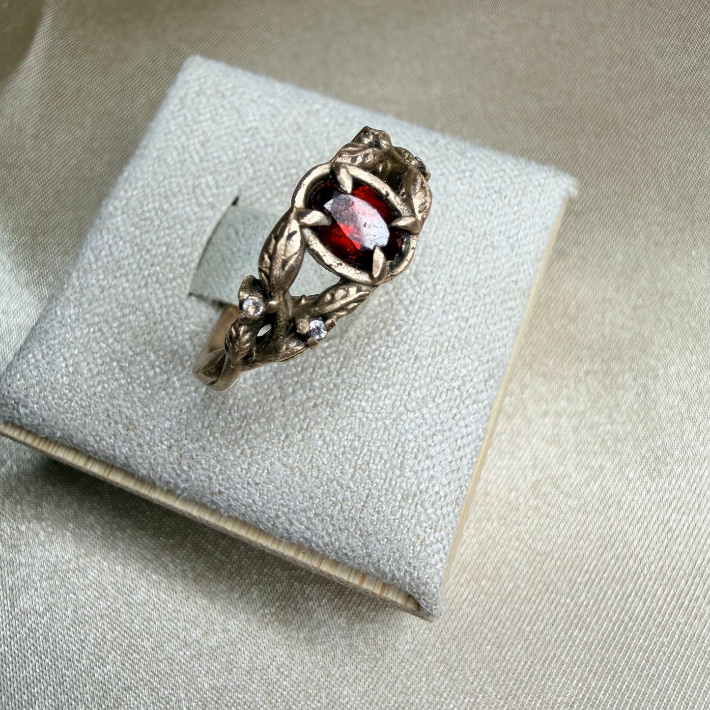 Vine & Garnet Ring · Ancient Bronze