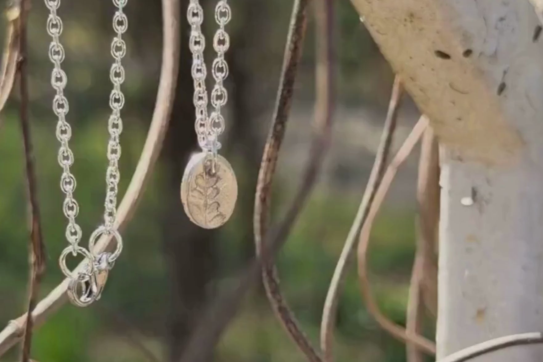 Two sprigs, two lengths, one conversation. The Small Sprig Pendants layer naturally against each other — each botanical impression distinct, each chain settling at its own depth. Wear them together and let the silver do the work. There is no wrong combination when the pieces share the same earth.