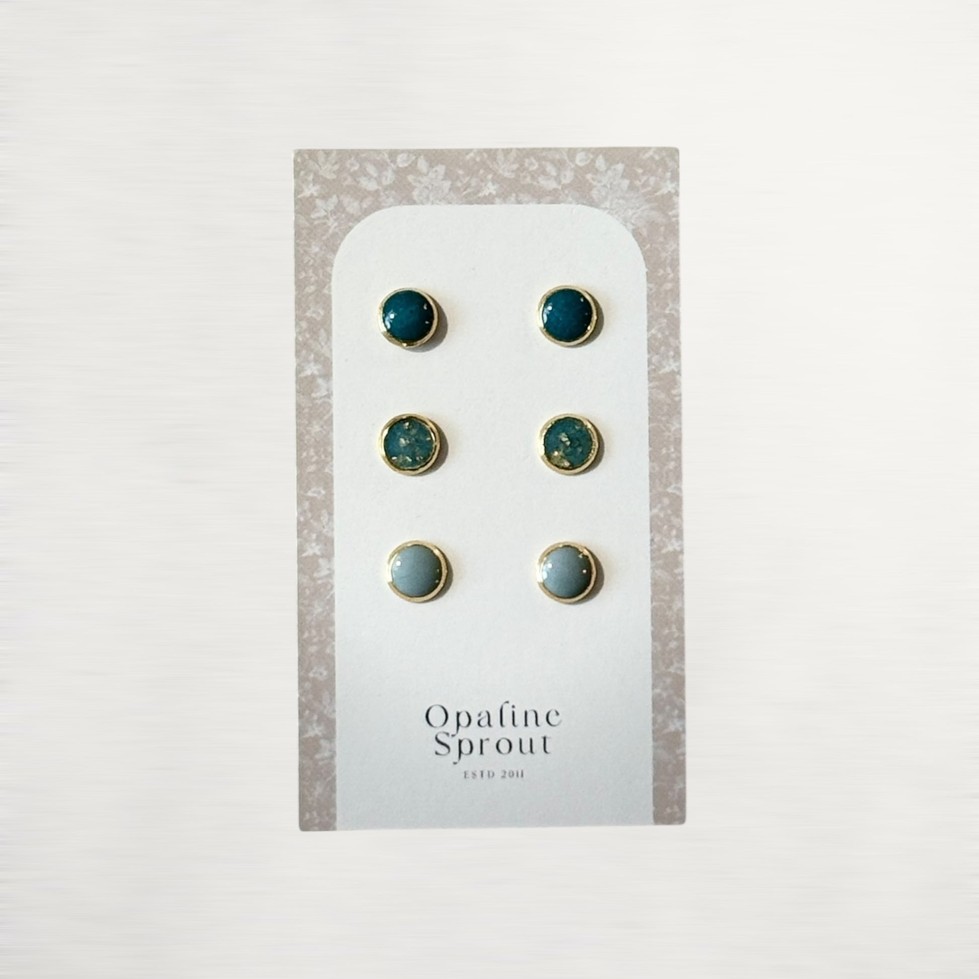 The Dot Studs – Dusty Mint, Navy, Slate Blue