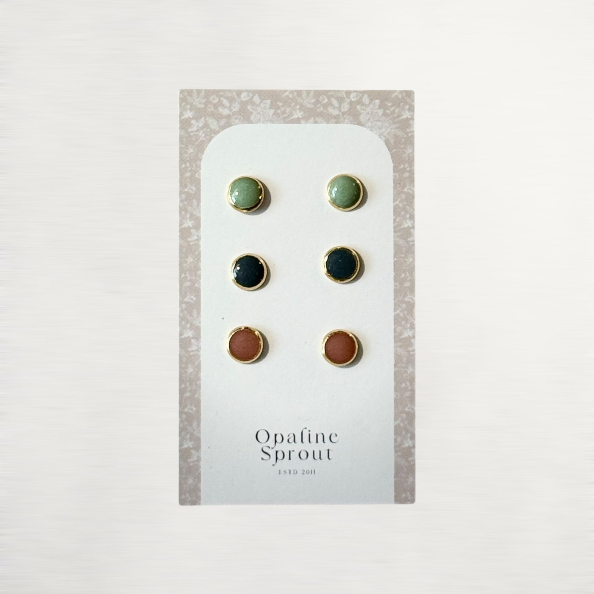 The Dot Studs – Prickly Pear, Slate Blue, Coral