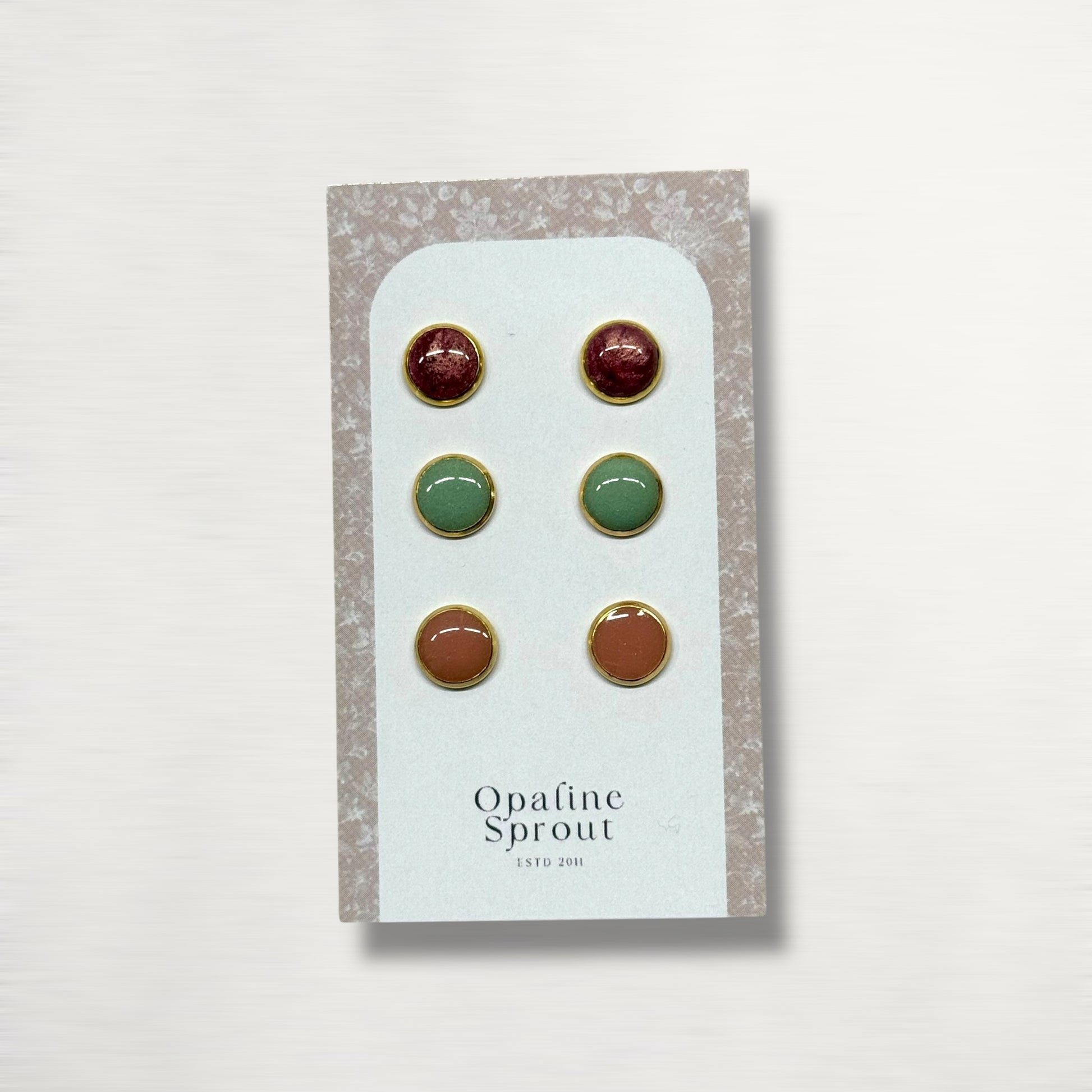 The Dot Studs – Ruby, Sage, Coral · Garden Collection
