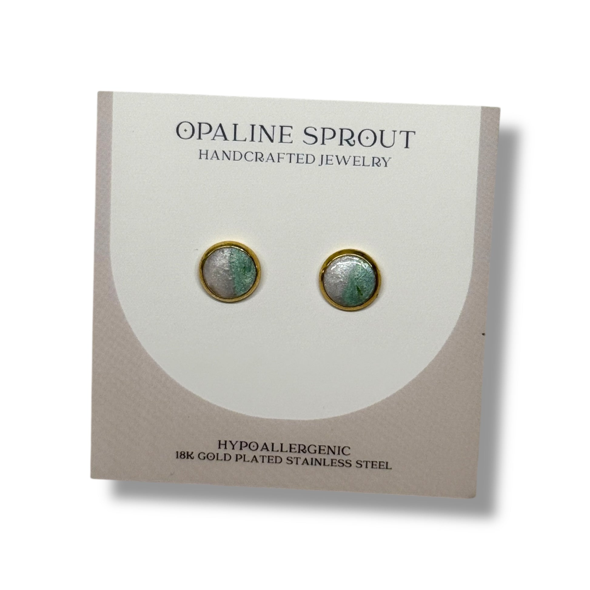 The Dot Studs – White & Sea Glass II Half · Water Collection · Medium
